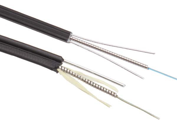 The cable structure provides sufficient tensile strength for aerial drop installations while protecting optical fibers from bending and environmental exposure.