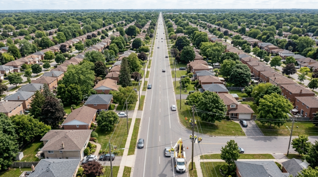 Designed for self-supporting aerial routes, this scenario focuses on tensile strength, span control, and long-term stability in real outdoor conditions such as wind exposure, UV aging, and shared pole infrastructure.
